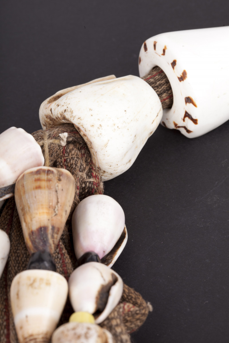 Materiali: conchiglie conus , avorio, tessuto di cotone intrecciato